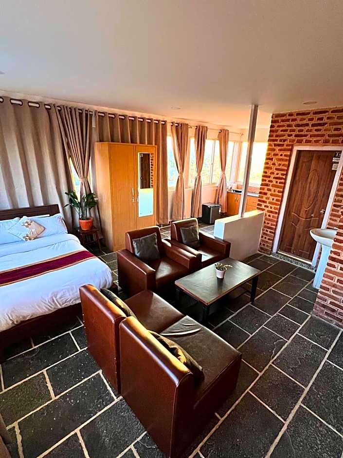 Offering free toiletries, this family room includes a private bathroom with a shower, a hairdryer and slippers. This family room has a tea and coffee maker, a wardrobe, a flat-screen TV and mountain views. The unit has 1 bed.